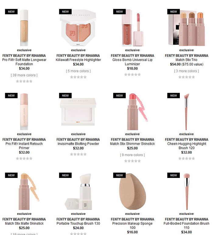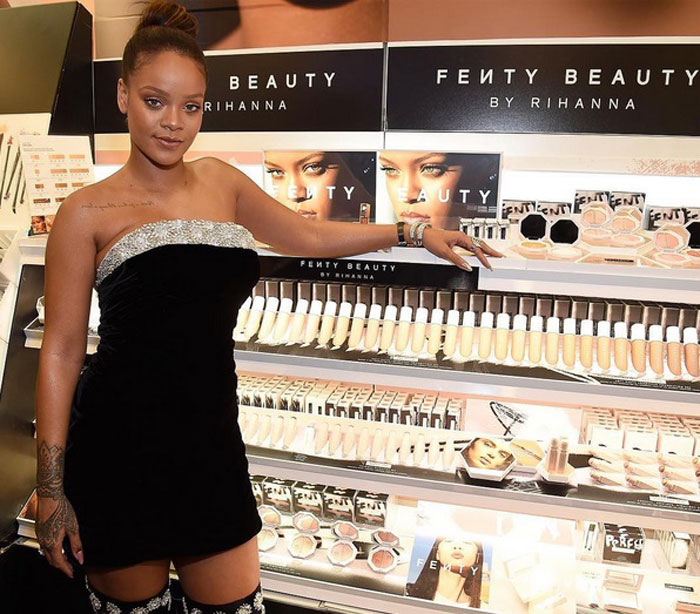 La cantante Rihanna acaba de lanzar una línea de maquillaje a la cual ha llamado Fenty Beauty. Fenty es su apellido paterno. Esta línea puede ser adquirida en fentybeauty.com o en sephora.com y a juzgar por los productos, no parecen ser nada del otro mundo, pero tienen una elegante presentación y al ser ella la representante, se convierte en novedad e inevitablemente deben subir los precios de los productos para evitar ser vendidos en drugstores, aunque creo que es un error, mucha gente tiende a comprar productos de belleza en drugstores por lo conveniente que son y las marcas que venden maquillaje de lugares como CVS, Rite Aid y Walgreens, resultan ser de muy buena calidad.
