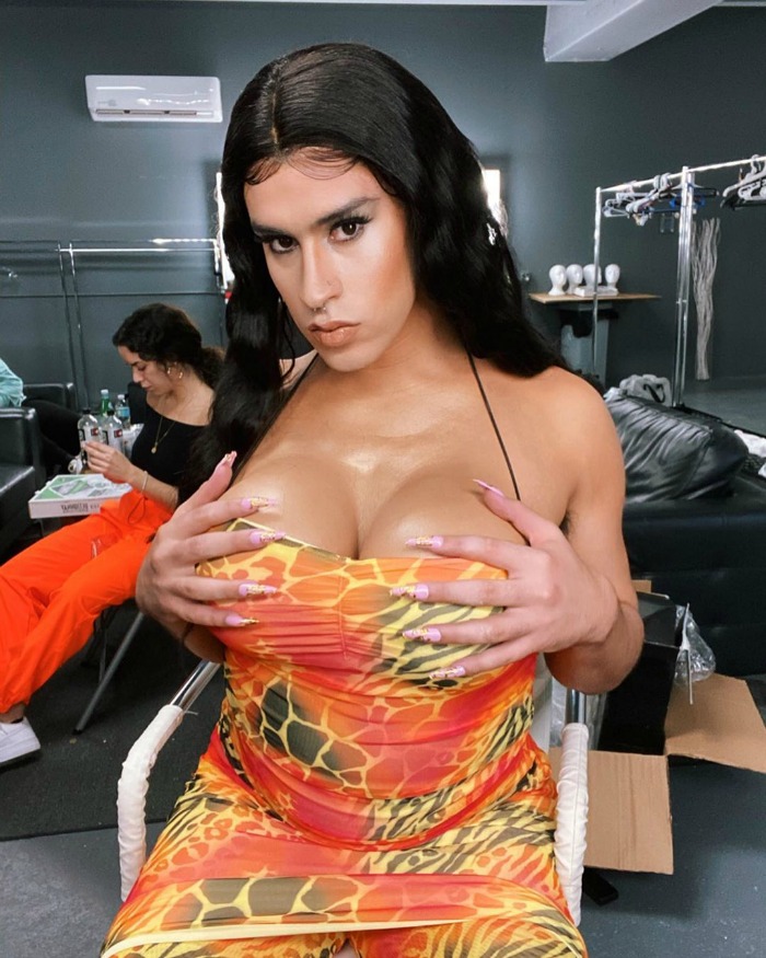 En estas fotos Bad Bunny aparece como mujer y como hombre al mismo tiempo bailando (con el mismo).