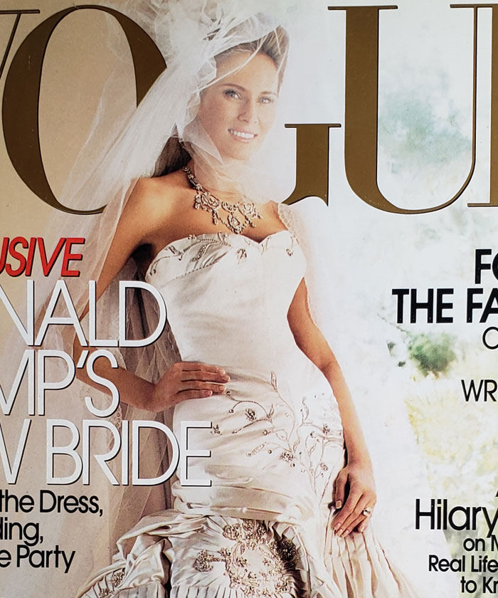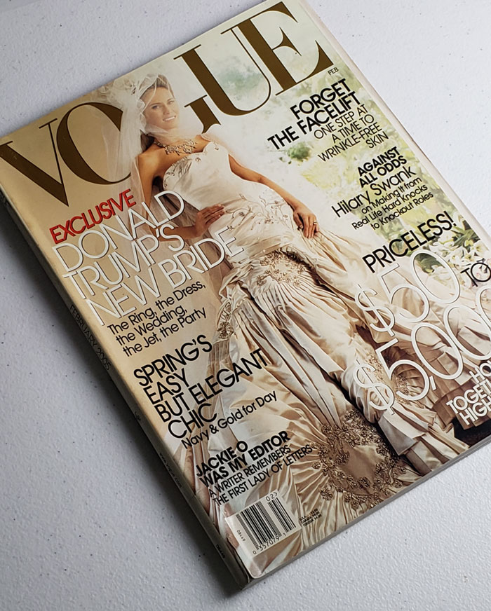 Encontré este «tesorito» en mi colección. En la portada de Vogue de febrero del año 2005 aparece la bella First Lady Melania Trump, una dama muy estilosa. Me encanta su vestido.