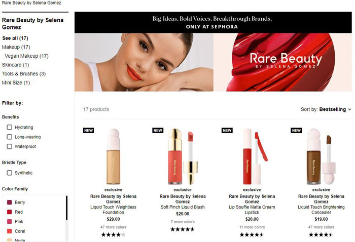 Puedes conseguir sus productos en Sephora.com y en rarebeauty.com, a precios razonables.