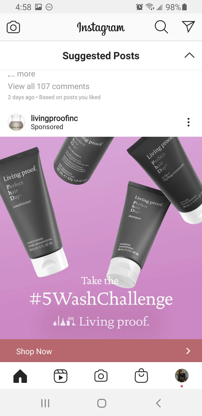 Después de cada dos o tres posts, Instagram te pone un anuncio y también los incluye en las stories, por suerte cuando usas Instagram en una desktop, ahí no se ven anuncios.