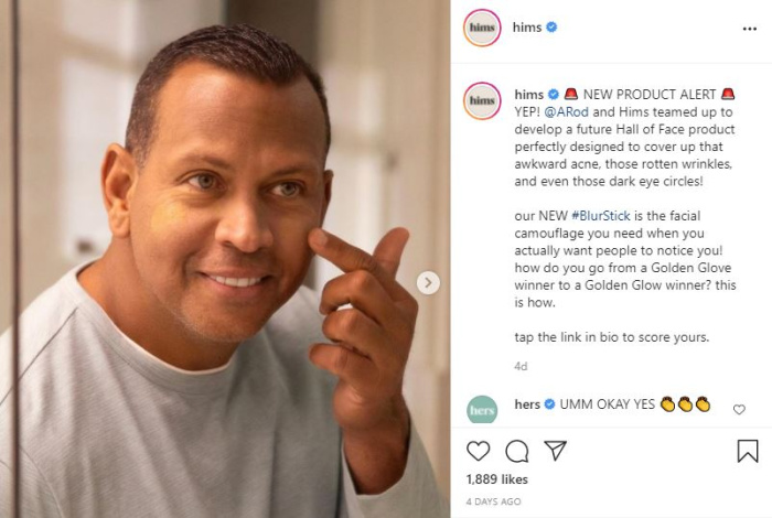 Alex Rodriguez, ex beisbolista y ex de JLo, se asoció con hims para lanzar un corrector “masculino” que cubre ojeras e imperfecciones en el rostro.