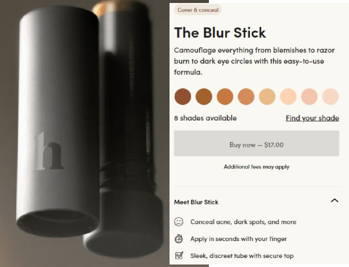 "Quería crear un producto que resolviera un problema al que me enfrentaba todos los días. Me di cuenta de que mientras saltaba de una reunión a otra, necesitaba algo rápido y fácil en mi rutina para ocultar imperfecciones o golpes de afeitar".