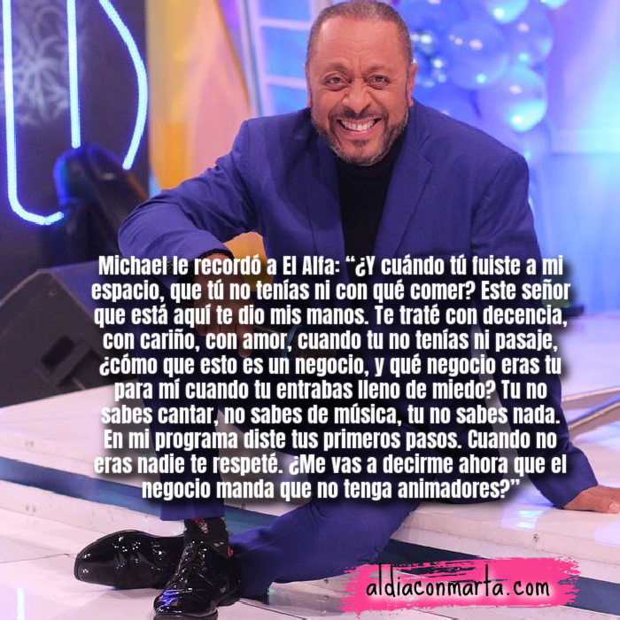Michael Miguel expresó sentirse disgustado y decepcionado con la actitud de El Alfa, quién en sus comienzos era un desconocido y él le dio la oportunidad de cantar en su programa, por el cual han pasado muchos cantantes importantes.