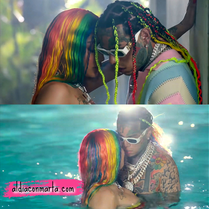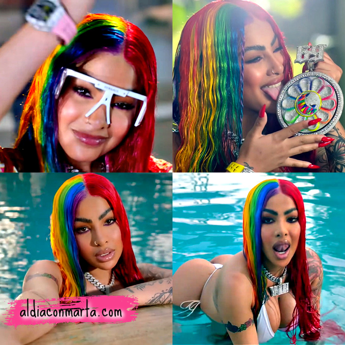 Como Tekashi 6ix9ine trae el cabello colorido, para combinar con el, Yailín optó por ponerse una peluca con los colores del arcoiris y así dejar atrás por el momento sus pelucas menos escandalosas.