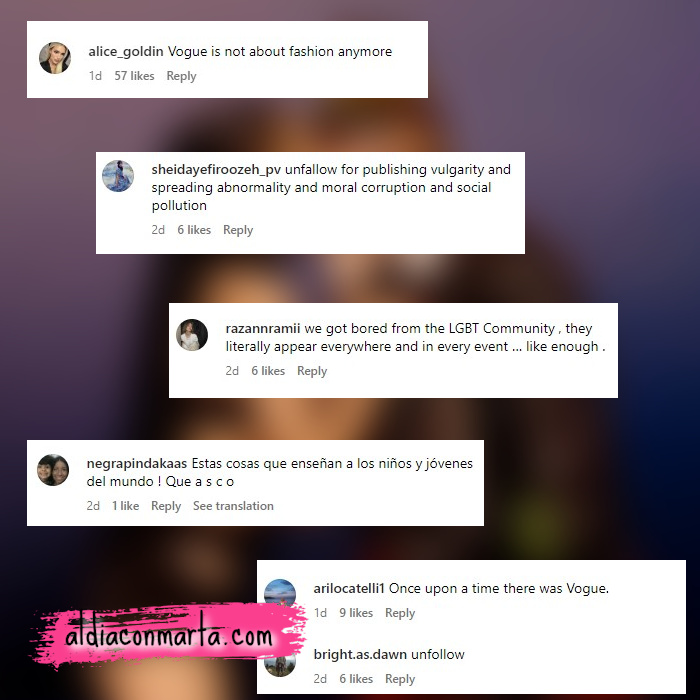 Hace unos días publicaron un reel en su Instagram donde la cantante FKA Twigs, quien tuvo hace tiempo un romance con el actor de Twilight, Robert Pattinson, se besó en el escenario con la modelo lesbiana Cara Delevigne, y muchos opinaron que era innecesario, que estaban aburridos de la comunidad LGBT porque en todas partes es incluida, y que la heterosexualidad pareciera que está siendo eliminada poco a poco en los medios. Muchos escribieron también que dejarían de seguir la cuenta.
