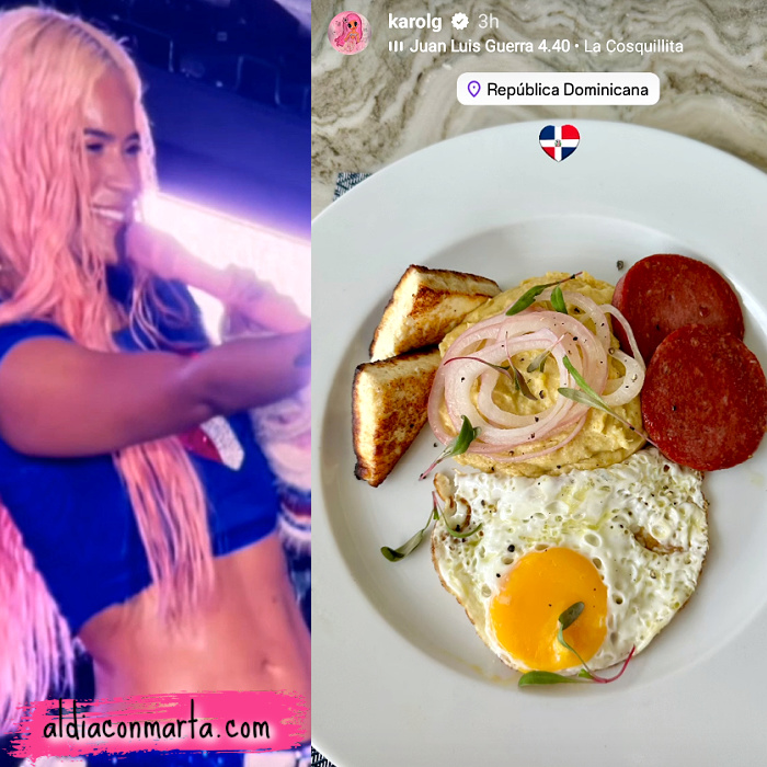 En su Instagram Stories, aunque no ha compartido nada backstage, sí mostró que iba a degustar un plato típico del país, el famoso mangú (plátano macho en forma de puré) con queso blanco, salami y huevo frito. Con el abdomen tan plano que está luciendo últimamente, ¿lo habrá comido realmente o sólo lo presumió para quedar bien?