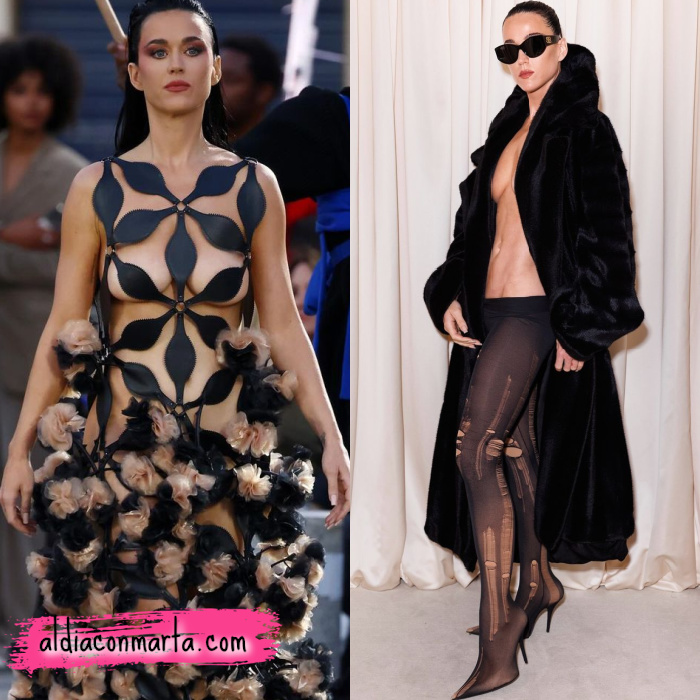 Aquí vemos a Katy Perry con dos looks muy desfavorables, pero como las marcas detrás de estos looks son consideradas dictadoras de la moda, pocos se atreverán a criticarlas.