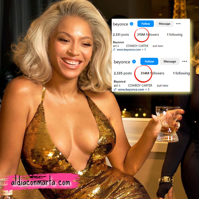 Todos están notando que la cantante Beyoncé está perdiendo seguidores en su cuenta de Instagram, la cual hace poco tenía 315 millones de curiosos siguiéndola, pero en estos últimos días ha perdido un millón, una cantidad bastante significativa y que no cualquiera obtiene con facilidad para perderla.