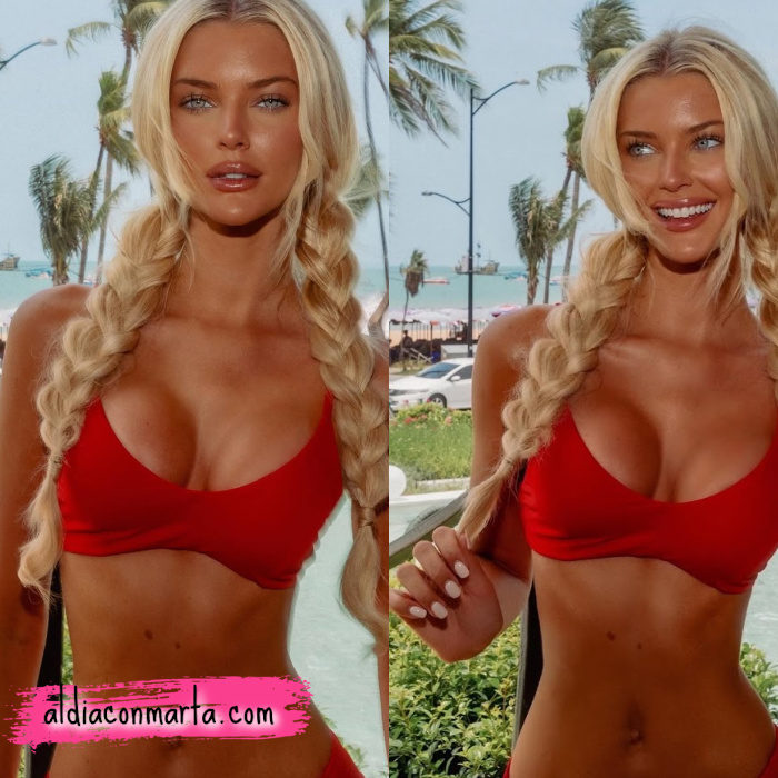 Victoria, al igual que Pamela, es rubia, bella, tiene cuerpazo, encanto, bronceado, y senos firmes.